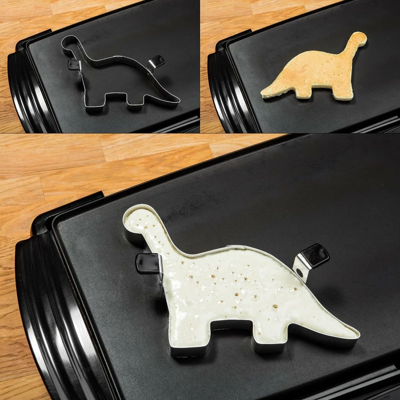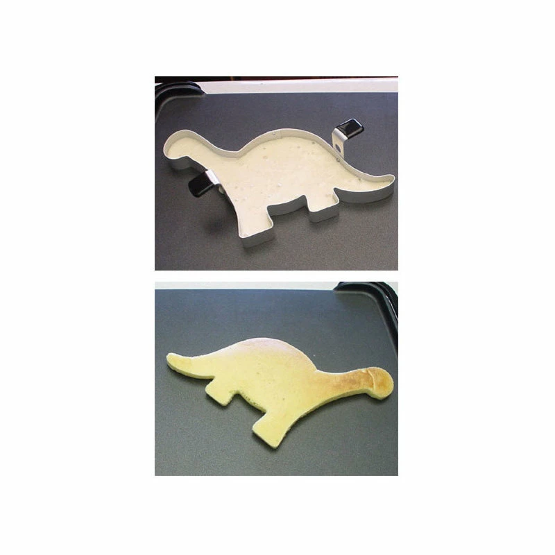 Apatosaurus Shape-Its Food Forms are manufactured from an aircraft aluminum alloy that has been specially processed to provide years of durable use without losing its shape. These forms work great for shaping any kind of shapeable food (i.e. pancakes, cakes, cookies, gelatin, ice cream, marshmallow treats, brownies and more.) Each form is easy to clean, dishwasher safe, oven safe to 350 degrees and will not rust. All Shape-Its Forms are equipped with folding handles to make storing easy.