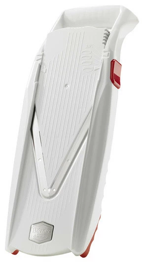 Set includes: Tough ABS plastic frame with slip resistant rubber feet, Food Safety Holder, 3 inserts (7 mm and 3-1/2 mm blades, thick/thin plane slice insert) Blade insert holder.Misc