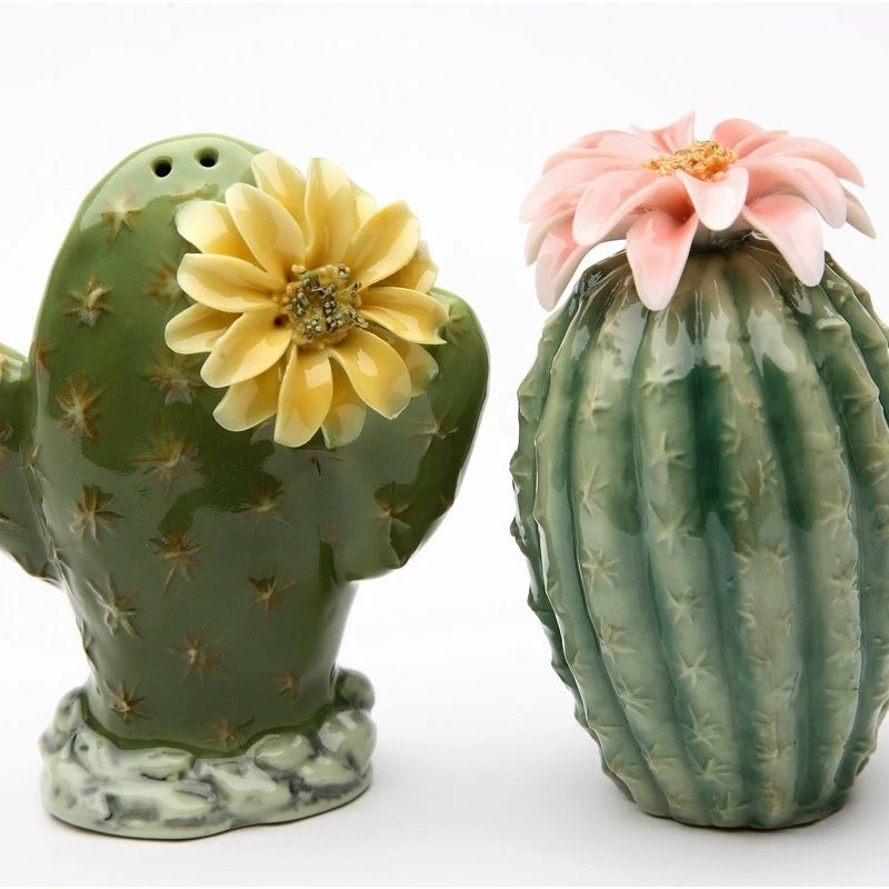 - Fine Porcelain Cactus with Pink Flowers Salt & Pepper Shaker.