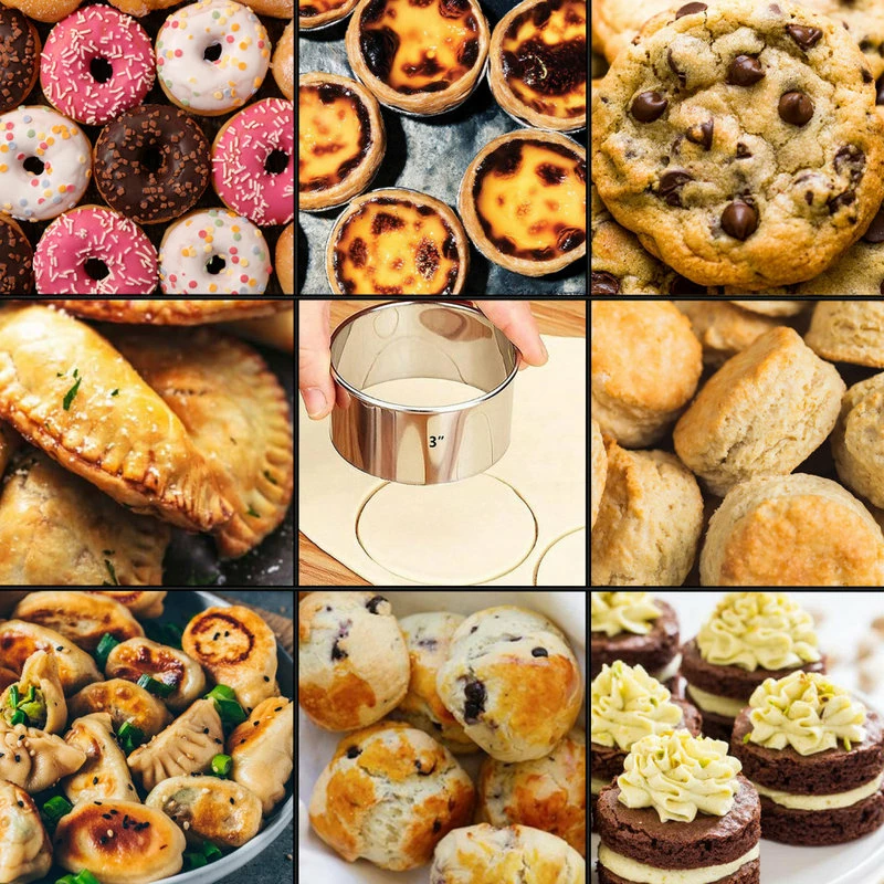 Set includes 11 round cutters with solid, plain edges. Cutters are made of high-quality stainless steel and range in size from 3/4″ to 3 5/8″ rounds. Perfect for cutting pastry dough, cookies and any other dough such as pizza dough. The set comes in a nicely designed case for easy storage. This set also makes a great gift for baking enthusiasts. Easy to clean, dishwasher safe.