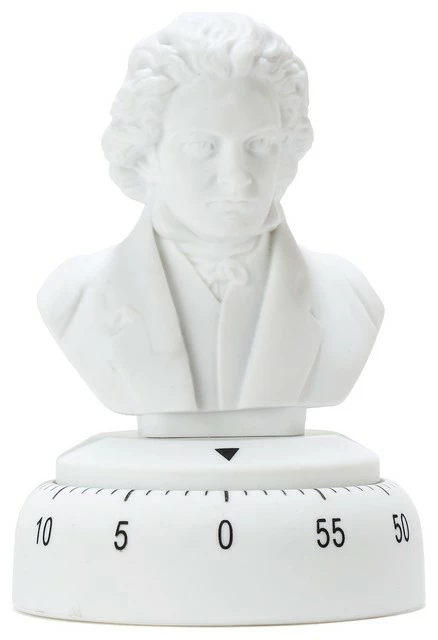 - Serenade the end of a precise cooking process with Beethoven’s masterwork, “Fur Elise,” automatically playing when the timer ends. A hilarious addition to a music-lover’s kitchen; sturdy wipe-clean plastic busts are 5 1/4″H.