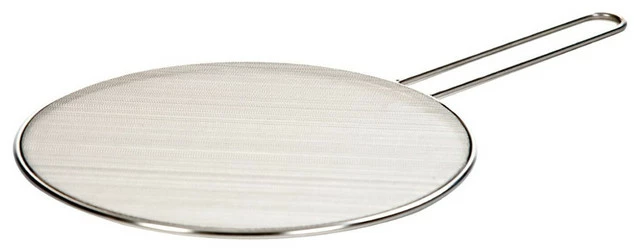 Protect yourself and your clean counter top with this splatter screen from Lodge. Made of durable stainless steel, the center is made of a fine mesh that contains hot splashes of oil or other liquids from burning you or dirtying your kitchen while still offering visibility of your simmering food. The screen rests neatly atop your pots and pans with a long handle that helps it balance on rims and keeps your hands safely away from hot liquid. The screen is also dishwasher safe for easy clean up.