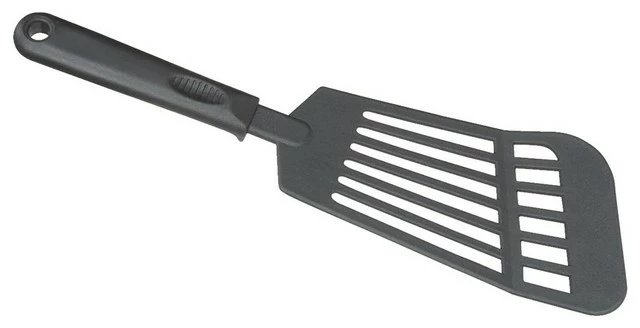 Easily turn, lift, and serve food of all shapes and sizes with this Norpro non-stick slotted spatula. With its black nylon construction, it is durable and long-lasting. This spatula features a slotted head designed to release liquids from anything you serve. It is also heat-safe up to 410 degrees Fahrenheit and has a non-skid handle with a thumb grip for ultimate control.