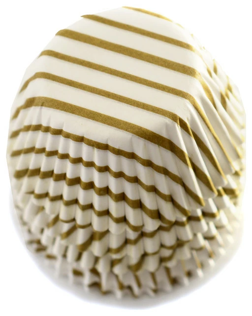 Bake up a batch of mini blueberry muffins or chocolate cupcakes with these Norpro mini cupcake liners. Made from paper, each liner features a gold swirl design set against a white background. Whether serving mini chocolate chip muffins at family breakfast or enjoying a snack-sized red velvet cupcake, these liners can easily fit in your mini muffin pan for baking. Protecting your pan from the mess and making it easy to serve, this set of 100 liners are also disposable for an easy clean-up.