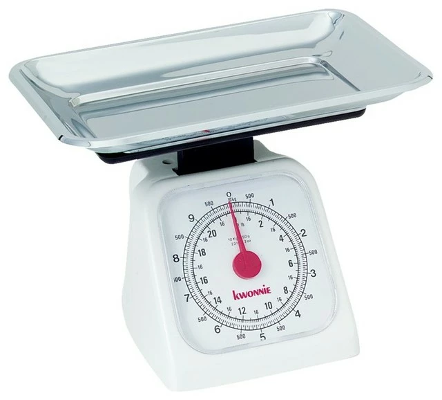 Weigh ingredients for recipes and more with this kitchen scale from Norpro. Constructed from heavy duty plastic with a stainless steel tray, this scale is perfect for large portions up to 22 pounds. It has a large, easy to read dial that displays both pounds and kilograms for convenient conversion. It is also easy to calibrate with a simple zero adjust function. Best of all, the tray is removable, making cleanup simple and easy.