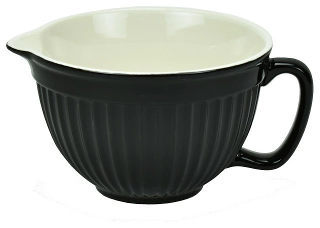 Color mix glazed finish ceramic 64 oz batter bowl. Microwave and dishwasher safe. Pouring spout and large handle ensure easy spill proof pouring. Build your own breakfast or get well gift basket.