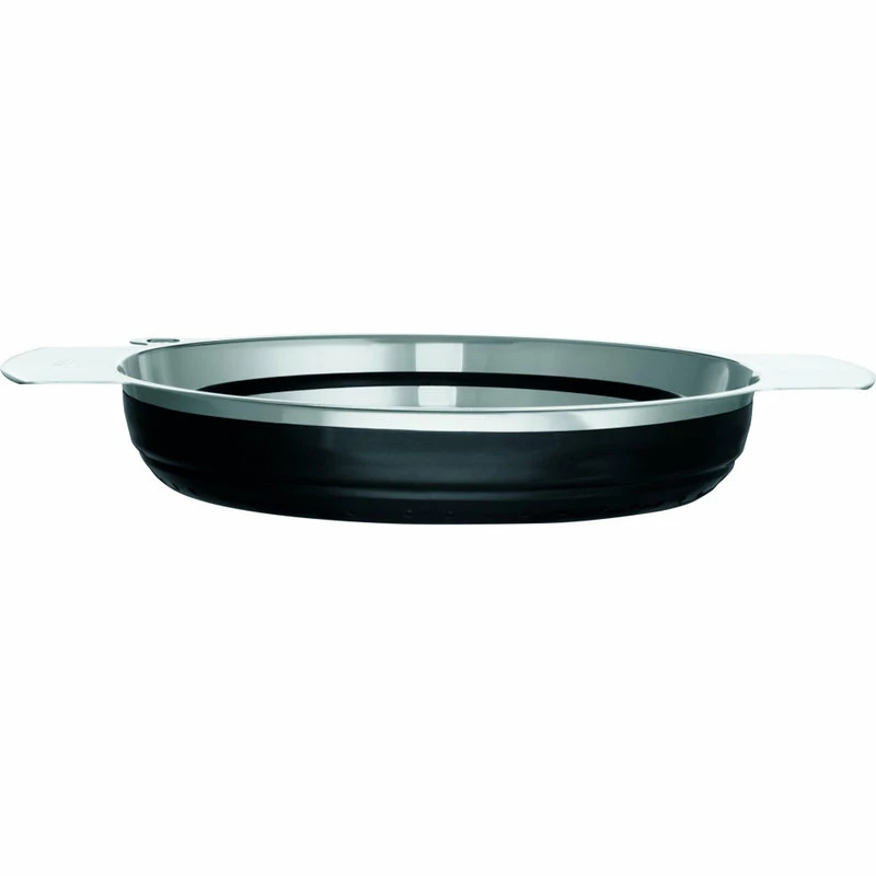 Foldable Colander blackFor straining vegetables and pasta and for washing salads. Evenly distributed perforations over the side and base ensure quick and efficient drainage. Three burls in the base provide a steady rest position. Silicone side walls allow easy folding to only4cm/1.6in. height for space-saving storage and cleaning in the dishwasher.