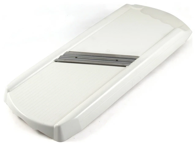Get perfectly sliced vegetables with this disc slicer from BORNER. The slicer is just what you need for slicing anything from fruits and vegetables to potatoes. With its stainless steel blade and durable plastic frame the slicer is lightweight and easy to use. It also features finger grips which make it safer simple to hold.