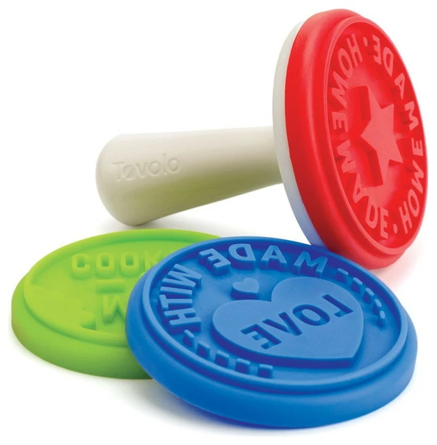 Make an impression with your cookies using this three piece Tovolo cookie stamp set. The easy to use manual stamper has three interchangeable phrases to imprint on your homemade cookie dough. Use one of the sweet “Homemade,” “Made with Love,” or “Milk & Cookies” stamps. Each design attaches to the handle for easy application and they all stack onto the handle for easy storage. The stamps are food safe, BPA free, and heat resistant up to 600 degrees Fahrenheit. Pop the interchangeable stamps and handle into the dishwasher for a convenient clean up.