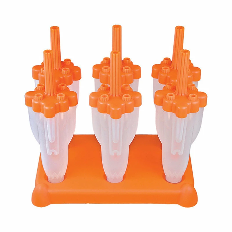 Nothing beats the heat better than a nice, cool, refreshing popsicle. A favorite for the kids, these orange popsicle molds make perfectly shaped space rockets. Simply fill the molds and place them into the base stand to hold them upright, and let your freezer do the rest of the work. Perfect for parties and Sunday treats, the insulated sleeves help retain cold temperatures while outside the freezer and keep the popsicles in prime ready-to-eat condition.