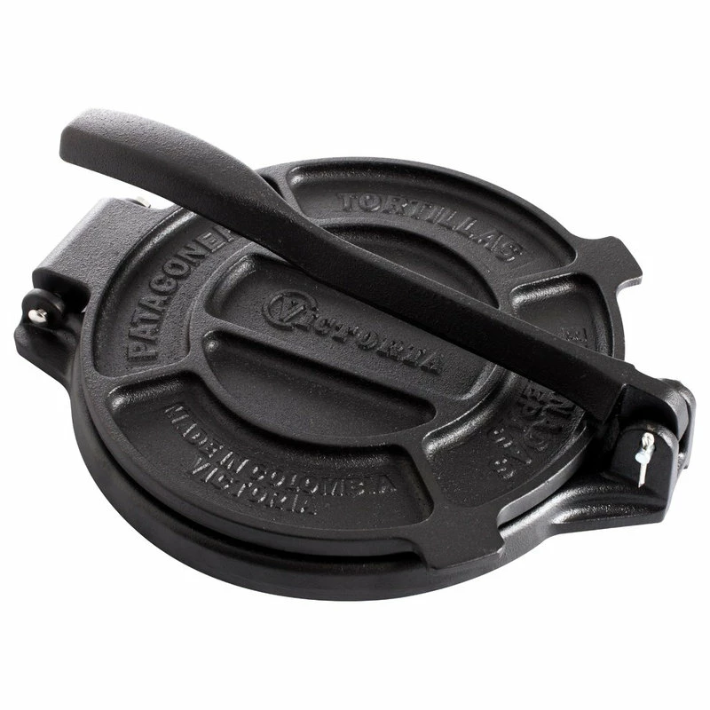 Make perfectly natural, flat and consistently thin tortillas with the internationally known Victoria Cast Iron Tortilla Press. The heavyweight construction means less effort and more consistency when pressing. This is the real deal. Say goodbye to store-bought tortillas (who knows what they even put in those) and hello to fun, fresh and healthy tortillas! This press is also known as a Pataconera and is great for making: tortillas, patacones, tostones, empanadas, arepas and more. Yes, it’s even strong enough for fried plantain tostones!.